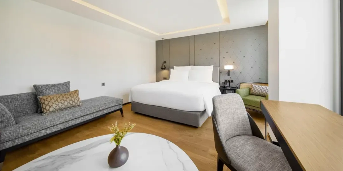 HOMM Sukhumvit 34 Bangkok is set in a quiet residential enclave just off Sukhumvit Road, offering a tranquil retreat within one of the city’s most vibrant districts. With 148 well-appointed rooms and suites, the hotel features a variety of amenities designed for comfort and relaxation, including a children’s club and a serene, greenery-lined swimming pool—ideal for families and leisure travellers alike.