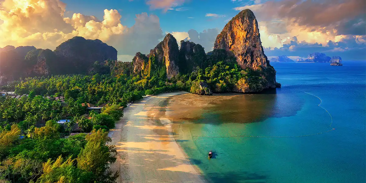 Escape to Krabi, a tropical paradise on Thailand’s Andaman Sea coast, known for its dramatic limestone cliffs, turquoise waters, pristine beaches, and lush jungles. Perfect for adventure seekers, beach lovers, and culture enthusiasts alike, Krabi offers a unique blend of relaxation, outdoor exploration, and vibrant local experiences.
